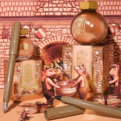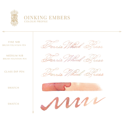 L’encre Oinking Embers séduit par sa palette cuivrée profonde, oscillant entre ambre, caramel et reflets métalliques. Son shimmer doré capte la lumière avec intensité sans compromettre la lisibilité, offrant un rendu riche et raffiné.