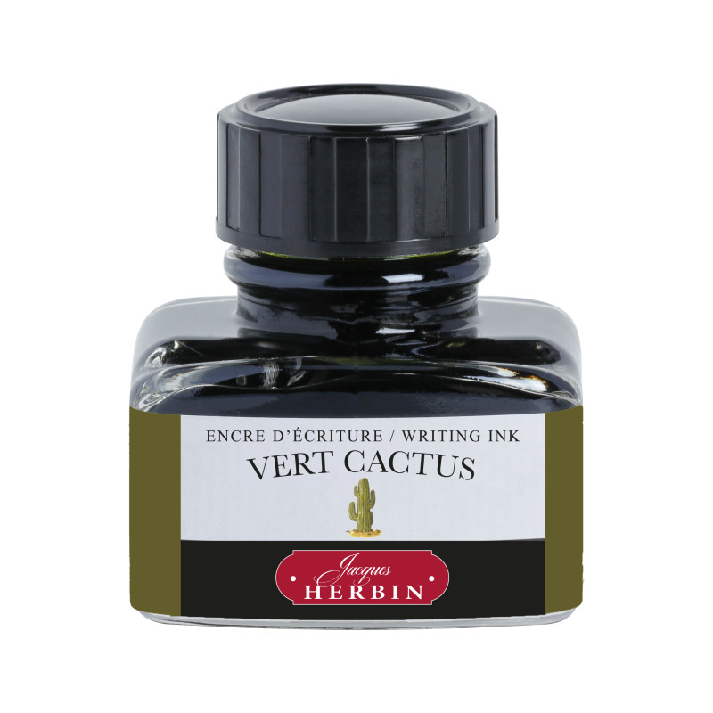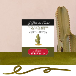 L’encre Vert Cactus de Jacques Herbin est une encre d’écriture verte aux nuances naturelles et végétales, inspirée des paysages désertiques et de la robustesse du cactus. Sa teinte vert olive, subtilement sombre, offre un rendu original tout en conservant une excellente lisibilité sur la majorité des papiers.